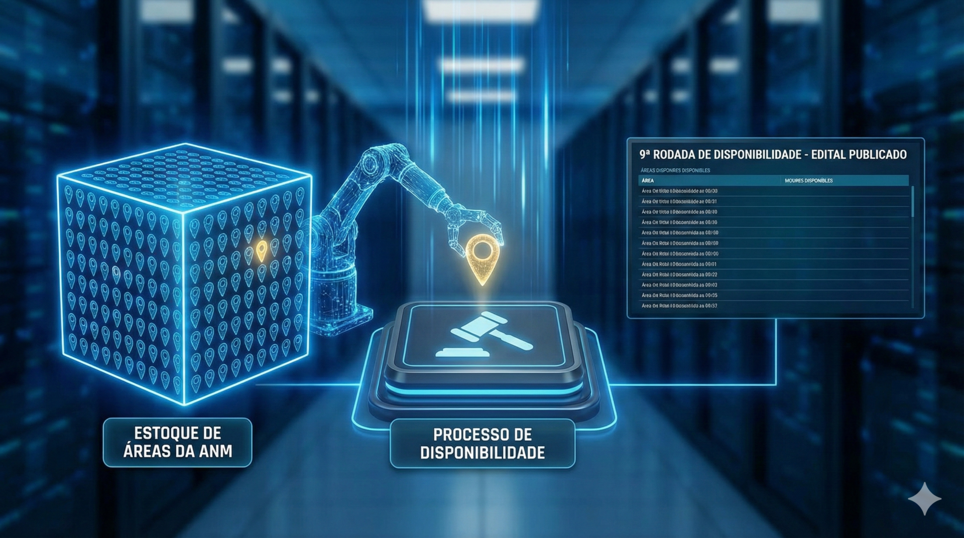 A “disponibilidade” é o procedimento licitatório pelo qual a ANM oferta ao público as áreas selecionadas de seu estoque. É o único mecanismo legal para que novos interessados possam adquirir direitos sobre essas áreas específicas.